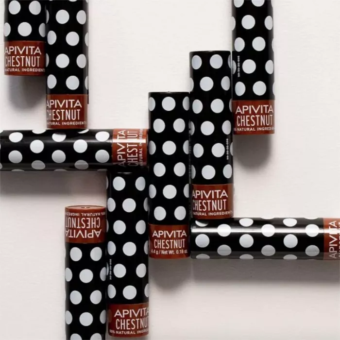 Апивита Увлажняющий уход для губ с оттенком Каштана обогащён экстрактом каштана, пчелиным воском, греческим оливковым маслом, витаминами и эфирным маслом герани.