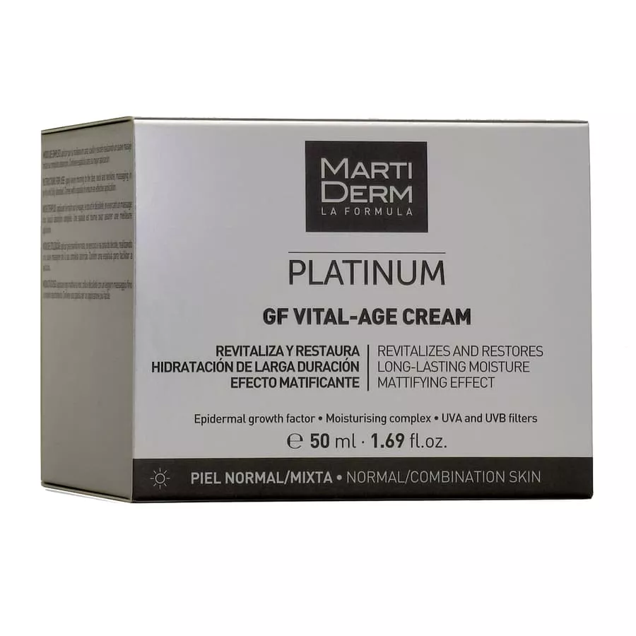 Наносите Martiderm Platinum GF Vital-age Cream на лицо, шею и зону декольте массирующими движениями до полного впитывания.