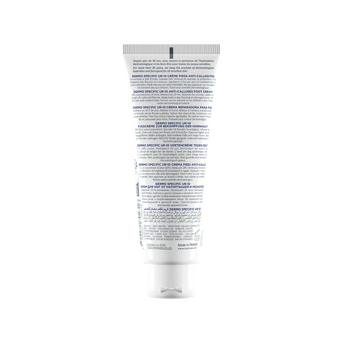 Наносите Topicrem UR 10 Anti-Calluses foot cream на сухую кожу ног массажными движениями, уделяя особое внимание участкам с наиболее сухой кожей. Для оптимальной эффективности рекомендуется использовать утром и/или на ночь перед сном. Не применяйте для поврежденной и детской кожи.