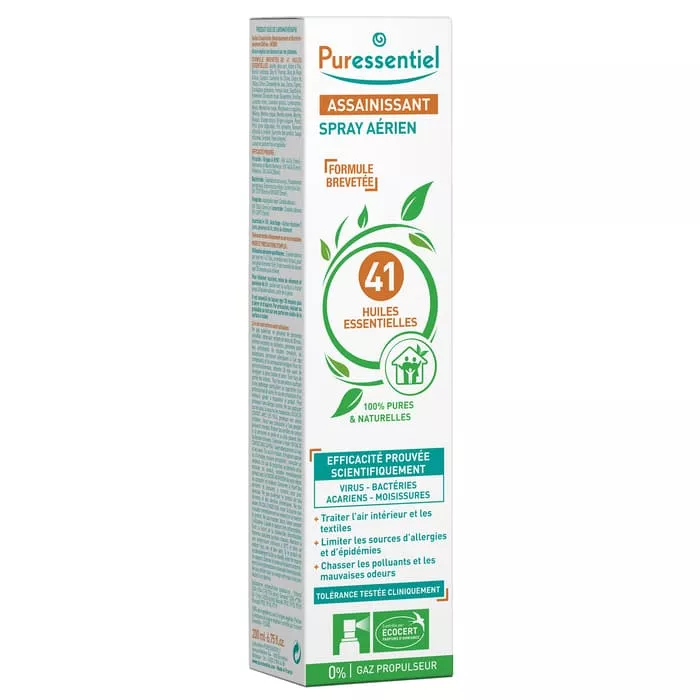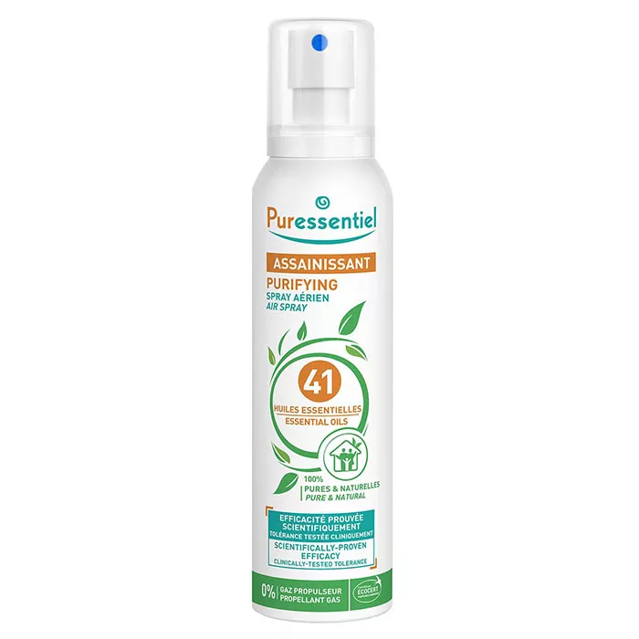 Пюресансьель Спрей для воздуха очищающий содержит 41 эфирное масло и предназначен для очищения воздуха в жилых помещениях. Комплекс эфирных масел способствует уничтожению бактерий, вирусов и плесени. Это на 100% натуральный продукт.