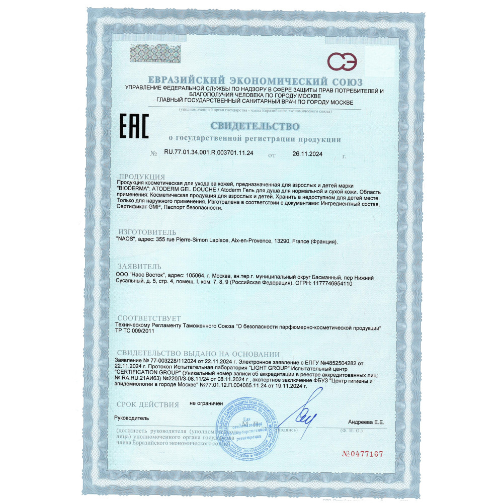 Активные компоненты Биодерма Атодерм Геля для душа:
