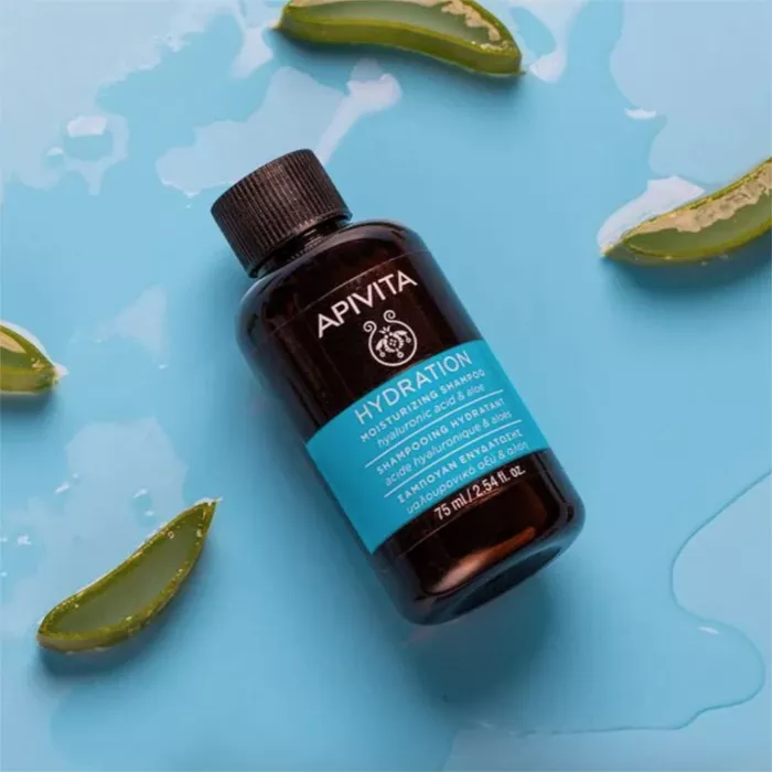 Апивита Увлажняющий шампунь с гиалуроновой кислотой и алое обогащён экстрактом прополиса и греческим мёдом из чабреца. Подходит для всех типов волос.