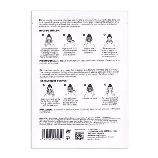 Увлажняющая тканевая маска изготовлена на основе хлопка и обеспечивает немедленное увлажнение, защиту и комфорт.