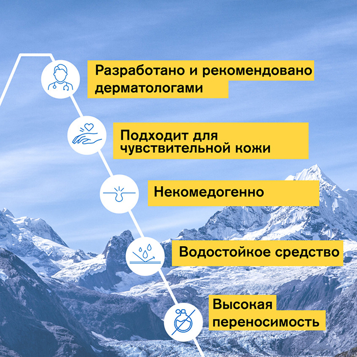 Без ароматизаторов. Без масел. Без спирта. Без парабенов. Гипоаллергенно. Некомедогенно. Водостойко.