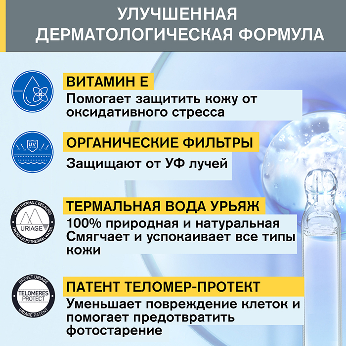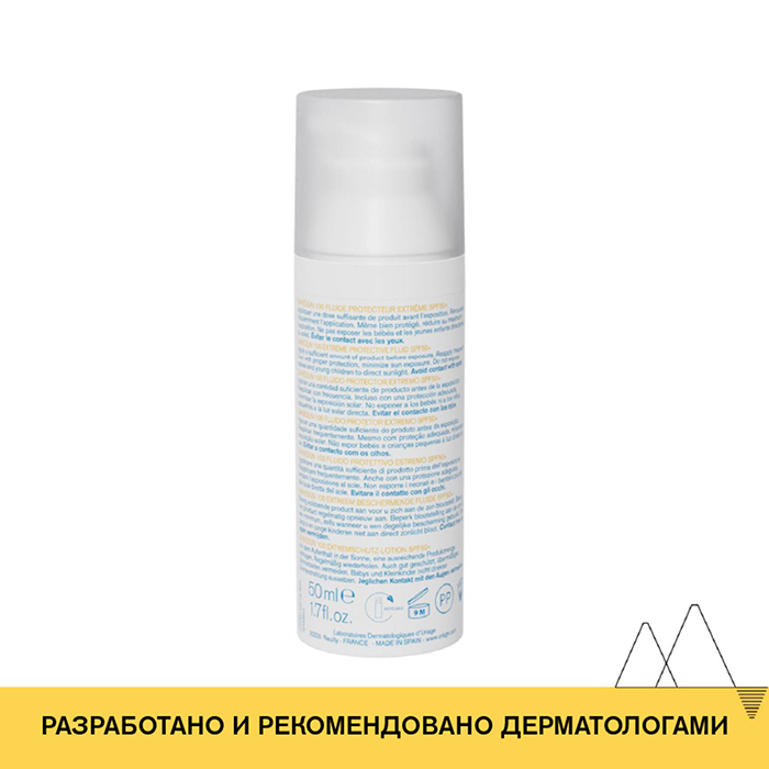 Эмульсия обеспечивает очень высокую защиту кожи от УФ лучей и воздействия свободных радикалов, интенсивно увлажняет и предупреждает фотостарение кожи.