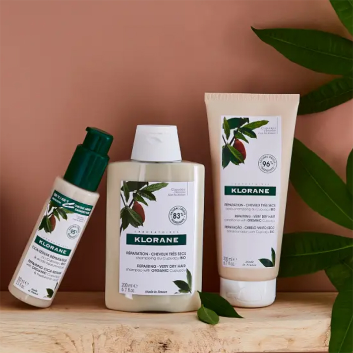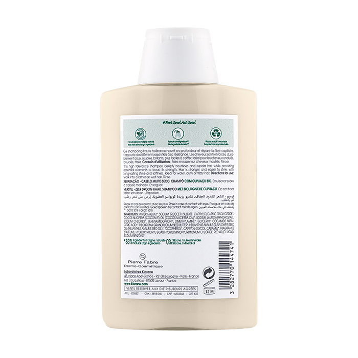 Клоран Шампунь с органическим маслом Купуасу разработан с целью минимизации возникновения аллергических реакций, он интенсивно питает и восстанавливает структуру волоса. Рекомендовано для очень сухих и поврежденных волос.