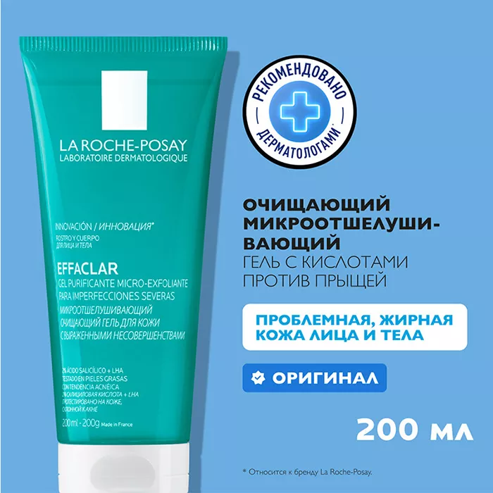 La Roche-Posay Эфаклар Микроотшелушивающий очищающий гель для кожи с выраженными несовершенствами интенсивно очищает кожу от загрязнений, оставляя её заметно более чистой и свежей, и беспечивает отшелушивающий эффект без повреждения кожи.