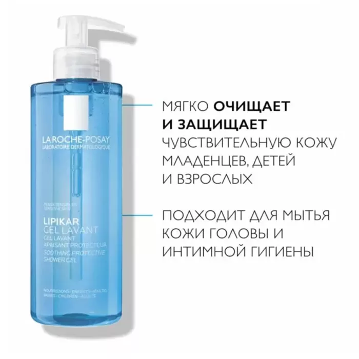 Ля Рош-Позе Липикар Успокаивающий гель для душа мягко и эффективно очищает кожу и защищает её от воздействия воды.