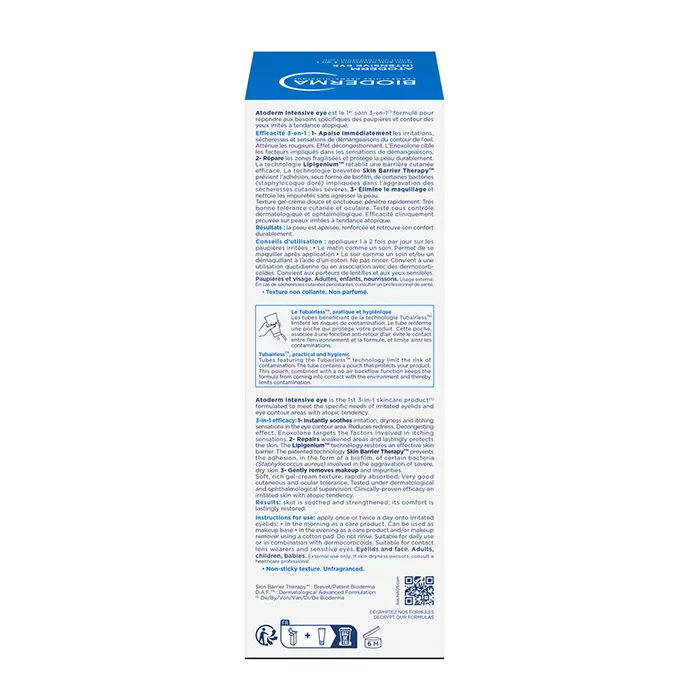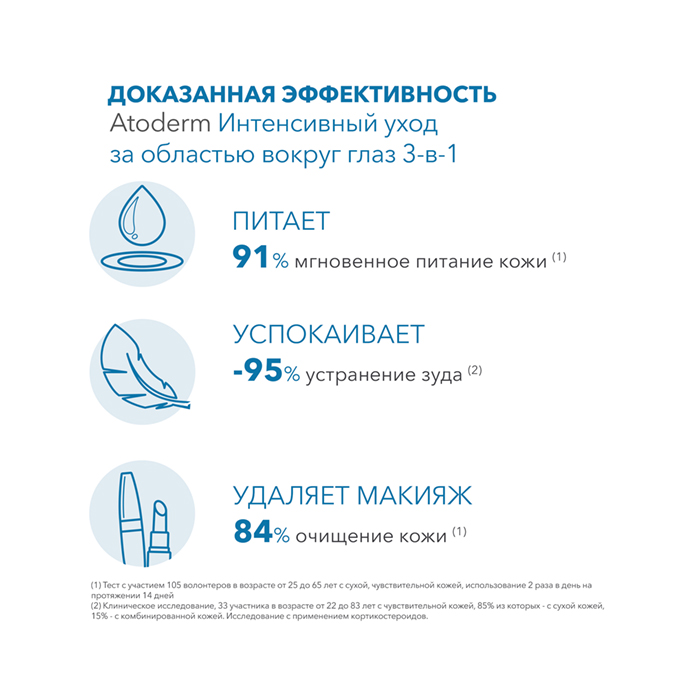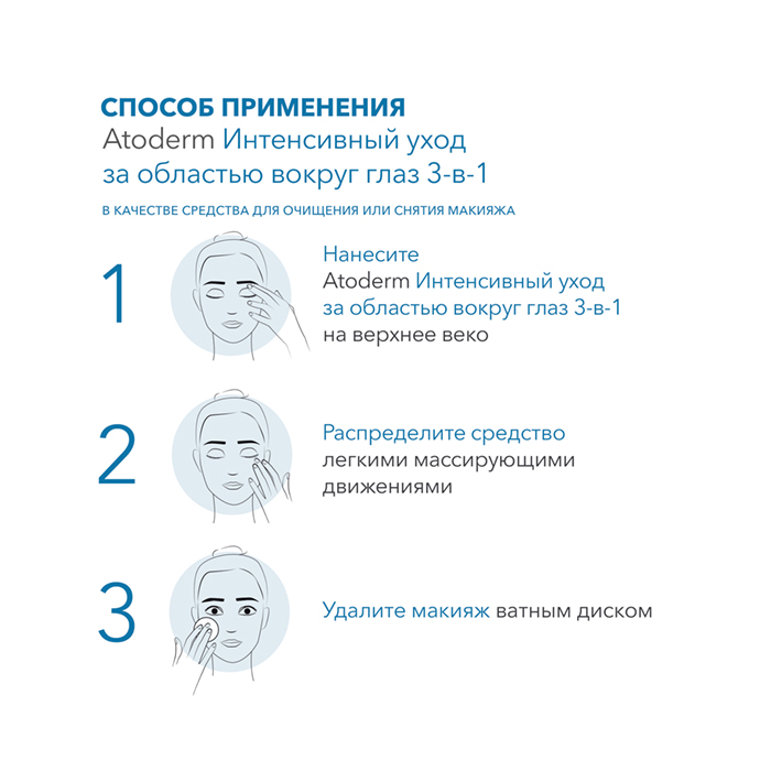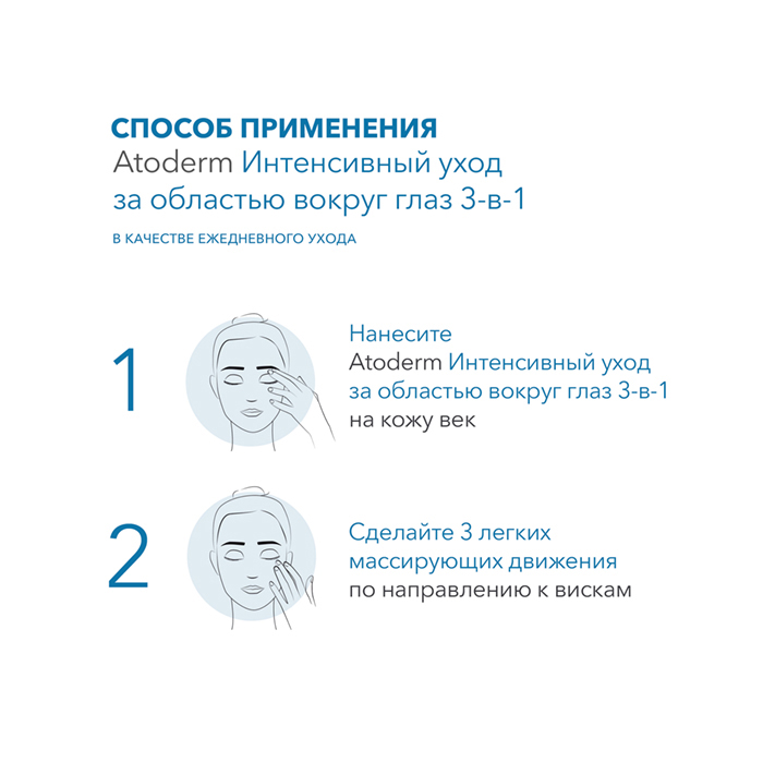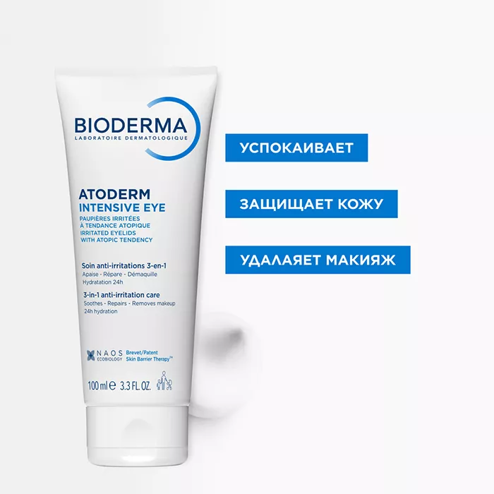 Биодерма Атодерм Интенсивный уход за областью вокруг глаз 3в1 предназначен для очень сухой, раздраженной и атопичной чувствительной кожи век.