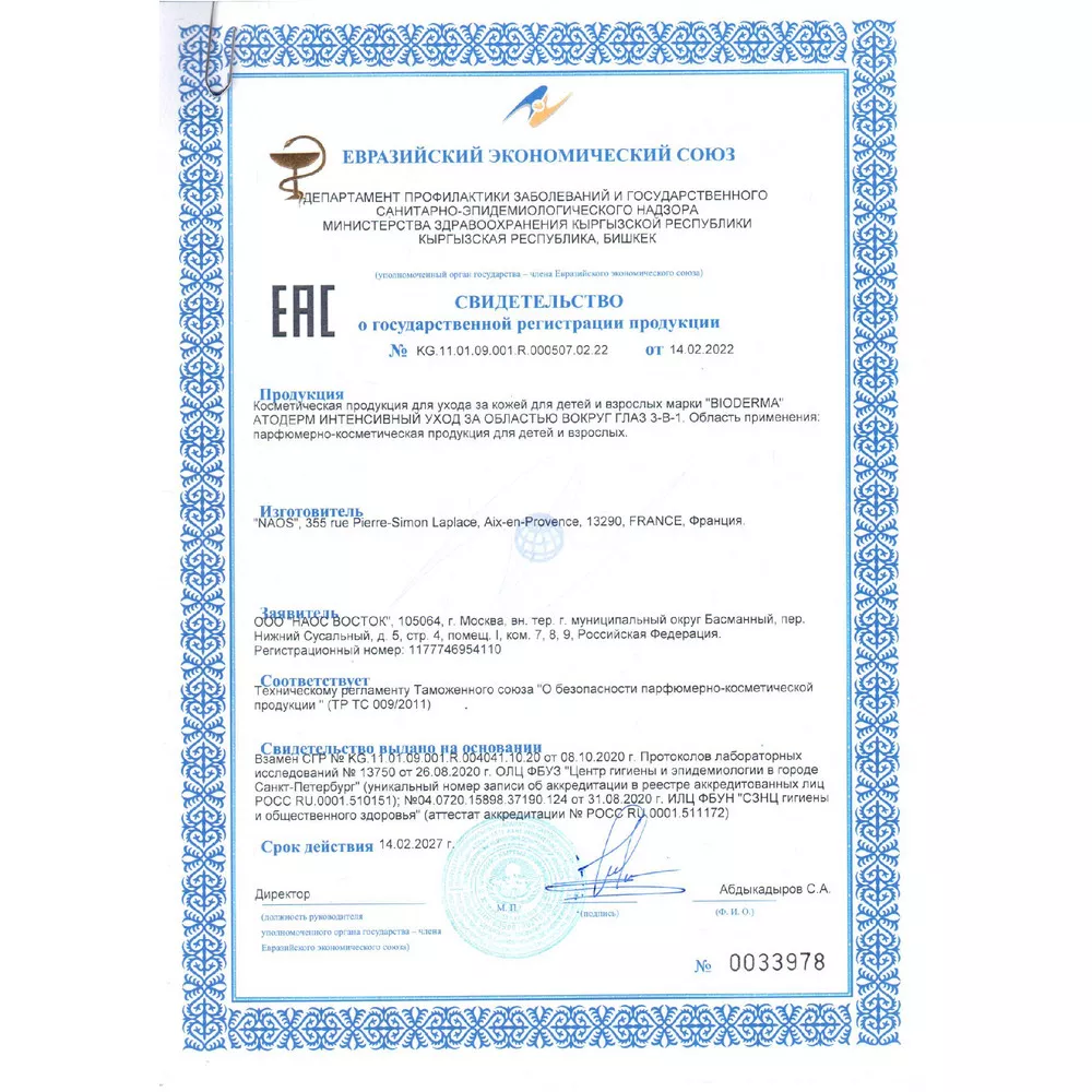 Bioderma Atoderm Intensive Eye подходит для ежедневного использования. Возможно сочетание с кортикостероидами.