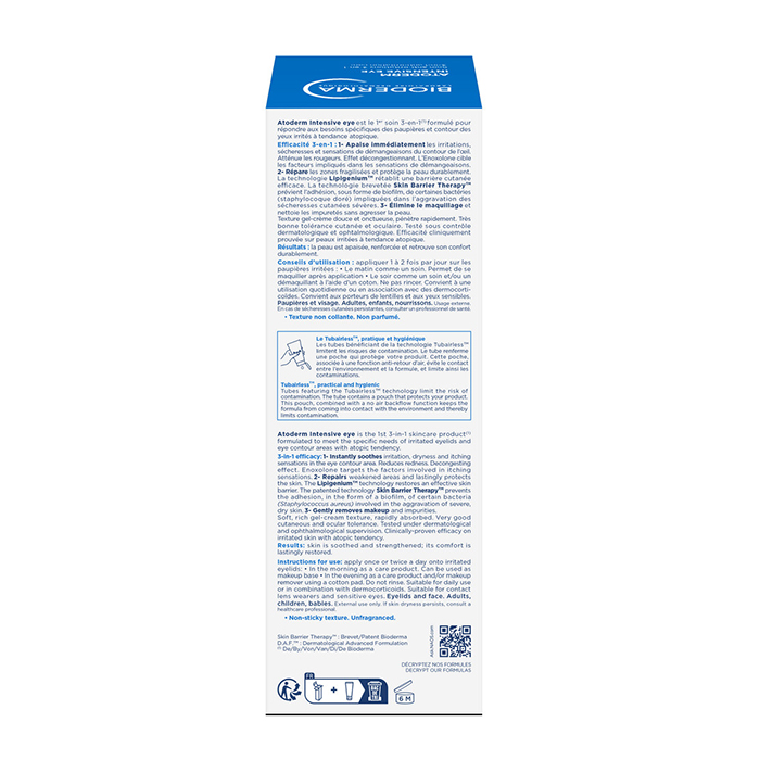 Биодерма Атодерм Интенсивный уход за областью вокруг глаз 3в1 предназначен для очень сухой, раздраженной и атопичной чувствительной кожи век.