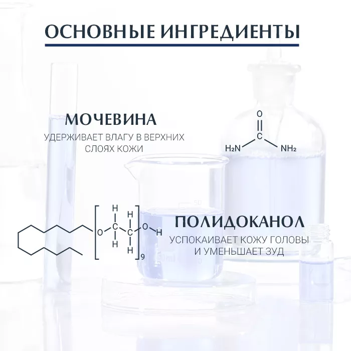 Клинические и дерматологические исследования подтвердили очень хорошую переносимость и эффективность при сухости кожи головы. Подходит для применения при атопическом дерматите и псориазе. Без отдушки.