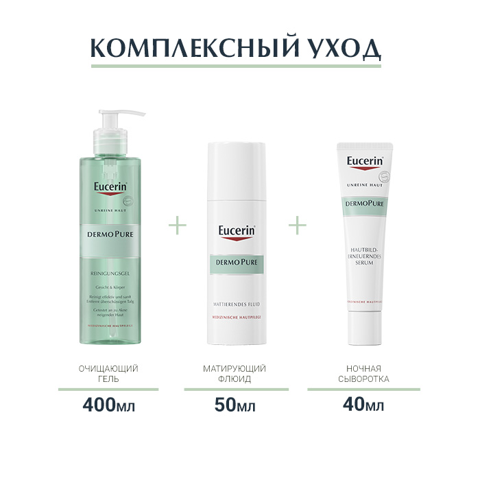 Eucerin DermoPURE Сыворотка – инновационное средство комплексного действия для жирной проблемной чувствительной кожи. Подходит для взрослых и подростков с 14 лет.