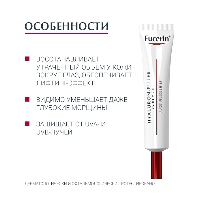 Eucerin Hyaluron-Filler+Volume-Lift Крем для кожи вокруг глаз – эффективное антивозрастное средство с магнололом, олигопептидами и гиалуроновой кислотой.