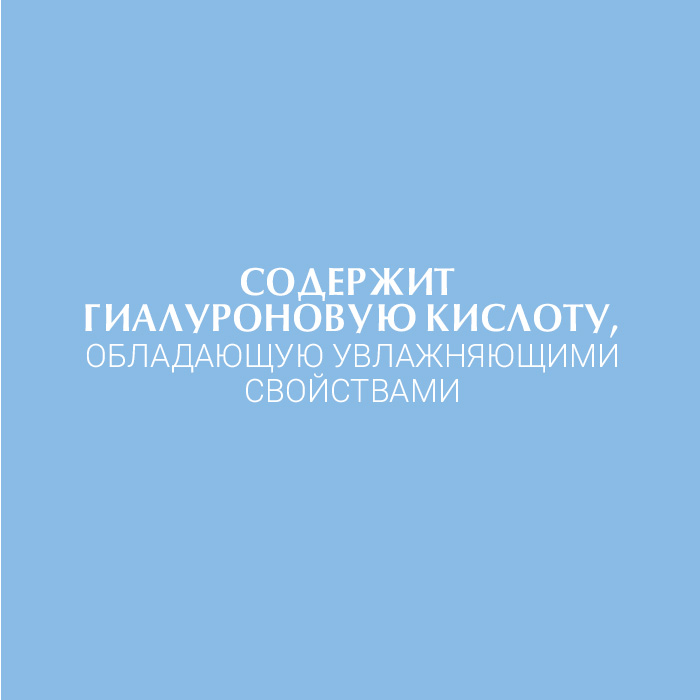 - Увлажняет кожу благодаря гиалуроновой кислоте