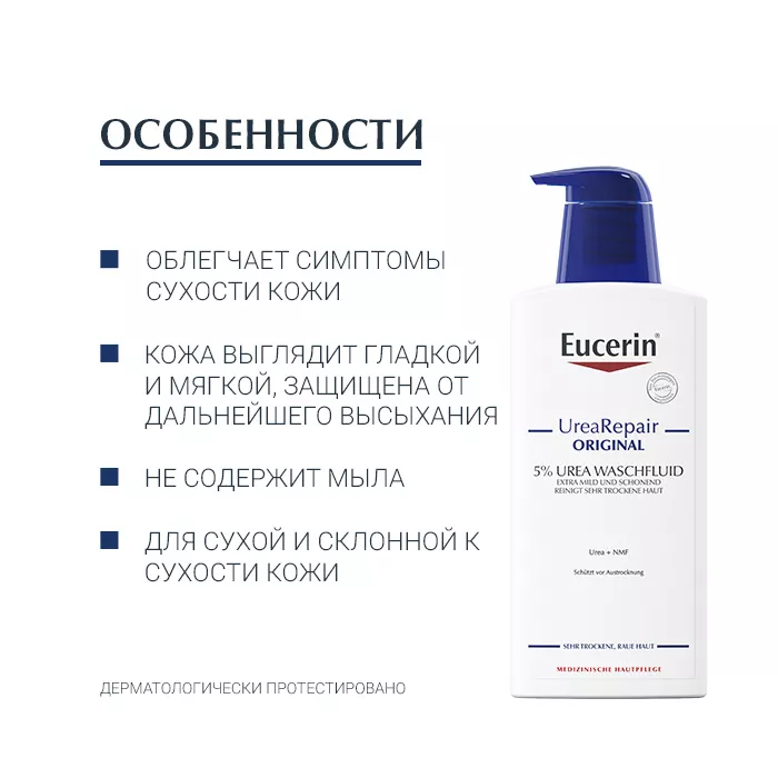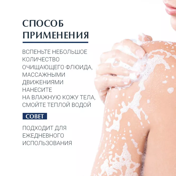 Флюид с текстурой прозрачного геля не содержит мыла, что позволяет использовать его даже при очень сухой, стянутой коже. Кожа становится гладкой и мягкой и защищена от дальнейшего высыхания.