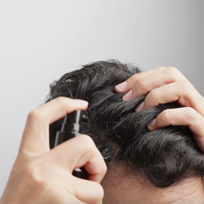 1.Расчешите волосы и распылите средство на волосы у корней вдоль пробора. На одно применение необходимо 8-10 распылений.