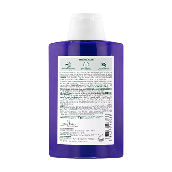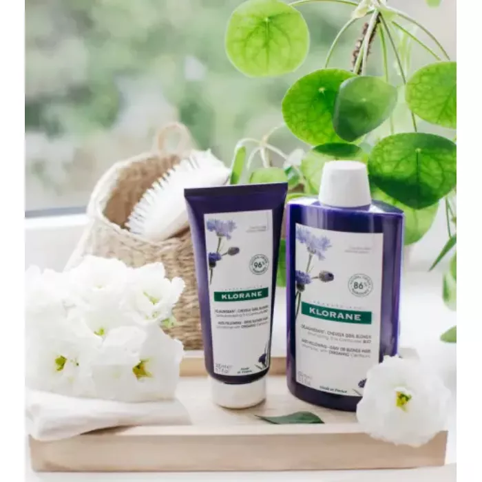 Клоран Шампунь с органическим экстрактом Василька разработан специально для обеспечения платинового блеска светлых или седых волос.