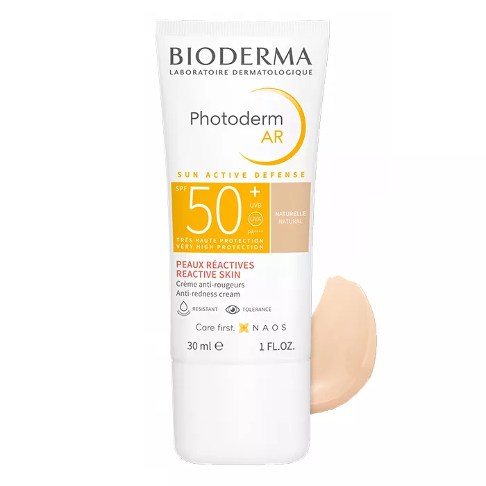 Фотодерм AR SPF50+ на лицо и шею перед выходом на солнце.